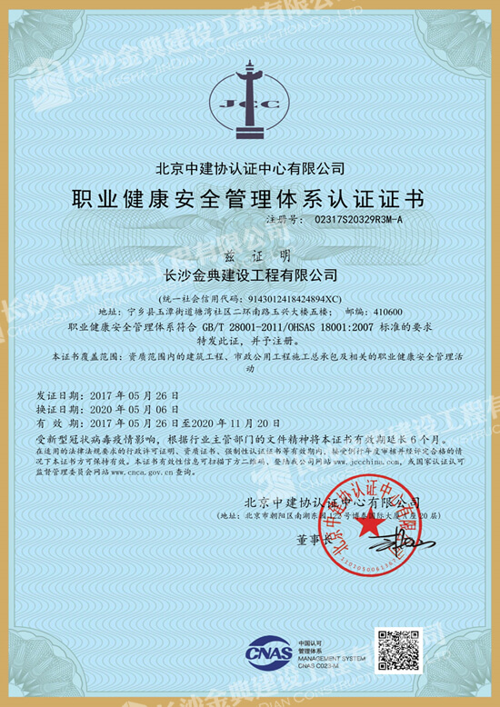 職業(yè)健康安全管理體系認證證書