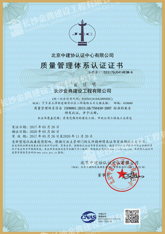 質(zhì)量管理理體系認證證書